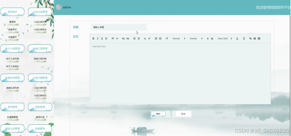 阅读创作平台中根据管理员的需求可以分为一下功能模块: