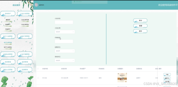 电子小说管理:管理电子小说信息,可以添加,修改和删除等操作。