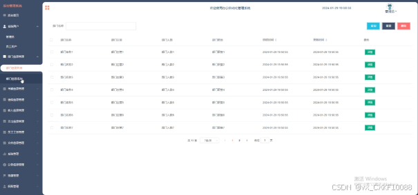(3)部门信息管理:管理员点击“部门信息管理”菜单可以对企业的部门信息进行管理,也可以添加新的部门信息,输入部门名称、部门主管、部门人数、部门职责等信息完成提交。
