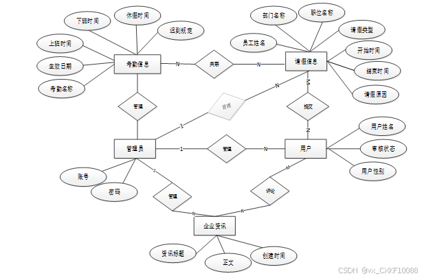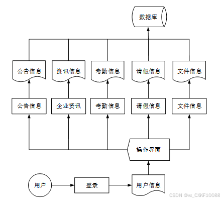 (3)确定好系统使用的技术,进行确认系统所划分的用户触,并且根据用户触划分确定所要设计的功能模块,对办公自动化管理系统的设计主要划分别为员工用户和管理员,并且所使用的功能模块也相应不同,但系统的数据库实现的内容是交互的,员工用户可以随时根据自己的需求进行企业资讯搜索及考勤信息查看,对于管理员可以根据自己的权限进行在线信息的处理及操作。