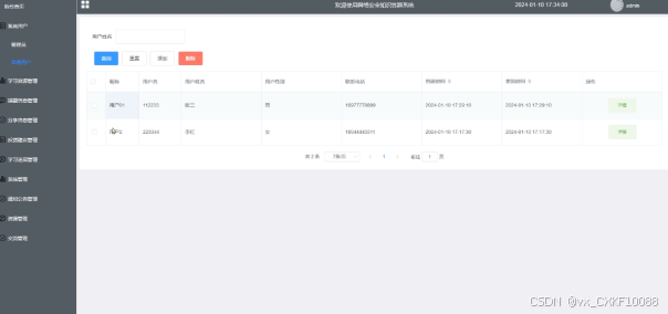 管理员点击“系统用户”这一菜单会显示管理员和员工用户这两个子菜单,管理员可以对这两个角色的信息进行增删改查操作。界面如下图5-12所示。