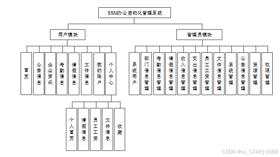 办公自动化管理系统我划分为了员工用户管理模块和管理员模块这两大部分。