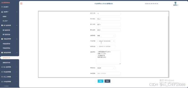 (4)考勤信息管理:管理员点击“考勤信息管理”菜单可以对前台展示的考勤信息信息进行管理,也可以对评论信息进入管控。