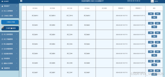 (4)工地员工管理功能需求:管理员可以进行添加、查询,编辑,删除操作。