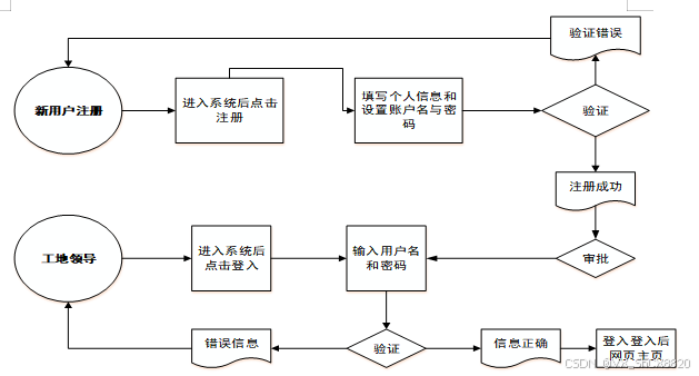(2)系统用户功能需求:用户管理部分包括了管理员和工地领导两部分,管理员可以对这两部分进行添加,修改,删除以及查询等。