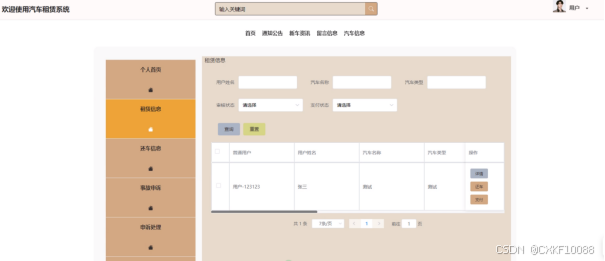 Key words: Car rental; JAVA language; SpringBoot; MYSQL database