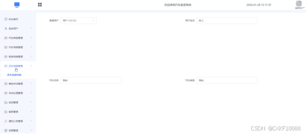 ● 租赁信息:用户可以查看自己的租赁订单详情,包括租赁时间、车辆信息等。