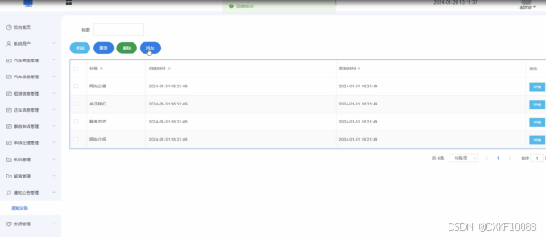 - 通知公告管理:发布、编辑和删除通知公告,确保用户能及时获取重要信息。