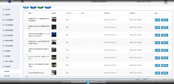 当点击“资源管理”这一菜单的时候,会出现新车资讯+资讯分类这两个子菜单,可以对这两个模块进行增删改查操作。资源管理界面如下图所示。