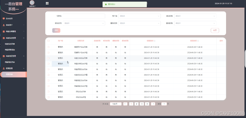 权限管理:对系统用户的权限进行管理,包括角色分配、权限设置等功能。
