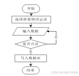 管理员可以对档案信息等进行的修改,用户可以对自己权限内的信息进行修改,首先进入修改信息界面,输入修改信息数据,系统进行数据的判断验证,修改信息合法则修改成功,信息更新至数据库,信息不合法则修改失败,重新输入。修改信息流程图如图2-5所示。