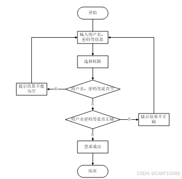 | 预期结果 | 用户名和密码正确的时候,跳转到登录成功界面,反之则显示错误信息,提示重新输入 |