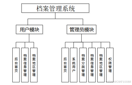 按照智能档案管理系统的角色,我划分为了普通用户模块和管理员模块这两大部分。