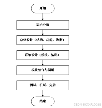 基于springboot的1+X证书管理系统开发时,首先进行需求分析,进而对系统进行总体的设计规划,设计系统功能模块,数据库的选择等,本系统的开发流程如图2-1所示。