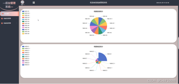 后台首页:展示档案的数量、类型、状态等统计信息。以图表形式展示档案在不同地区的分布情况。