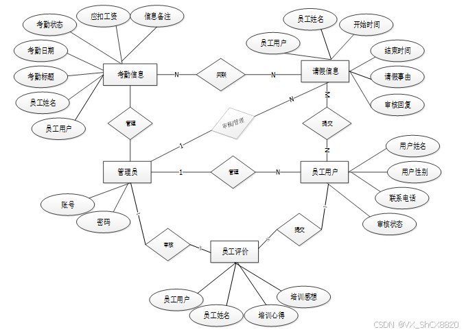 下面是整个北塔公司员工管理系统中主要的数据库表总E-R实体关系图。
