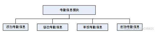 北塔公司员工管理系统是中需要存储不少考勤信息,其模块功能结构,具体的结构图如下: