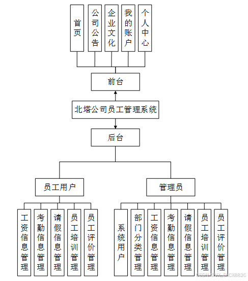 北塔公司员工管理系统我划分为了员工用户模块和管理员模块两大部分。