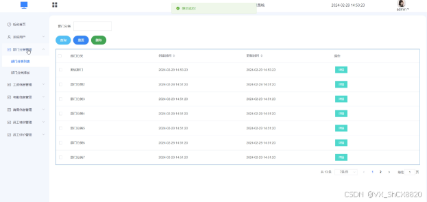 管理员点击“部门分类”可以查看到所有的部门分类,可以对其进行增删改查操作。部门分类管理界面如下图4-12所示。