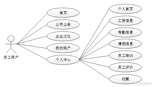 图2-1 北塔公司员工管理系统员工用户角色用例图