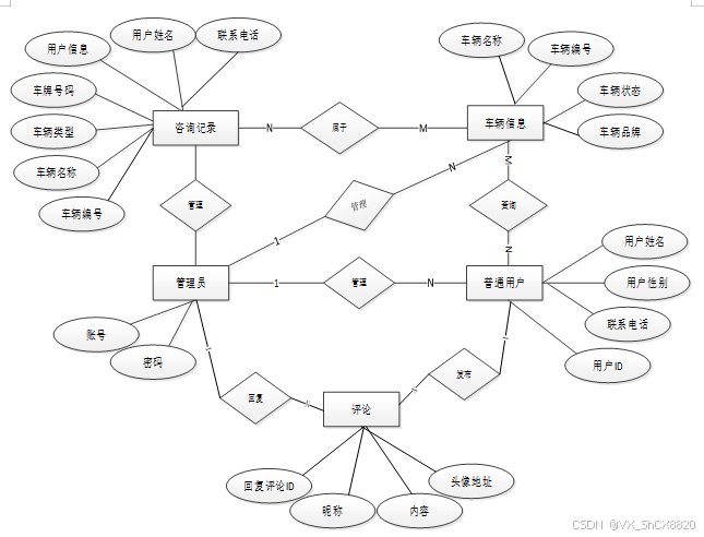 下面是整个汽车租赁管理系统中主要的数据库表总E-R实体关系图。