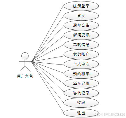 图2-1 汽车租赁管理系统用户角色用例图