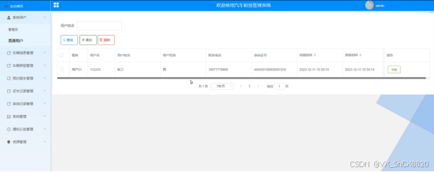 (2)系统用户:管理员可以对汽车租赁管理系统中的管理员以及前台注册的游客用户进行增删改查。