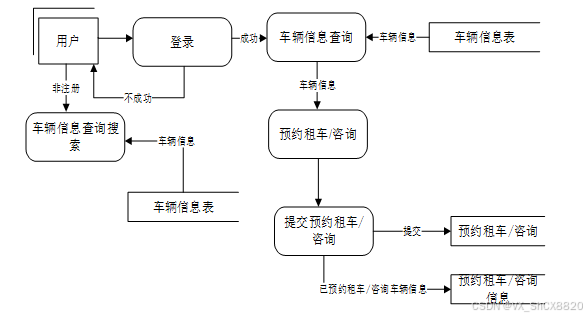 开发汽车租赁管理系统最主要的一个目的就是实现用户对车辆的预约租车/咨询,图2-4就是系统的数据流图。