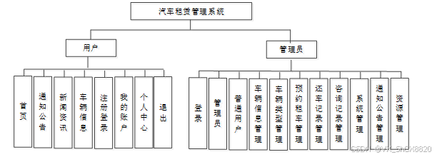 汽车租赁管理系统是中需要存储不少车辆信息,其模块功能结构,具体的结构图如下: