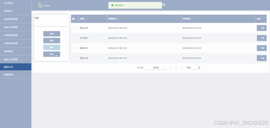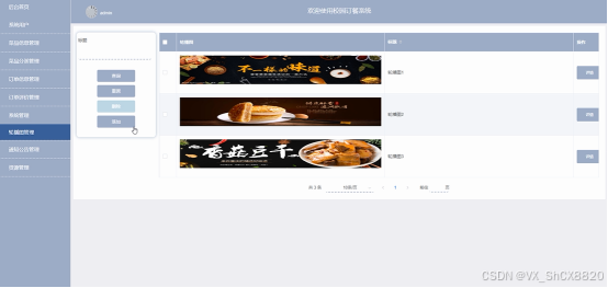 管理员可以对系统前台展示的轮播图进行增删改查,方便用户进行查看。系统管理界面如下图所示。