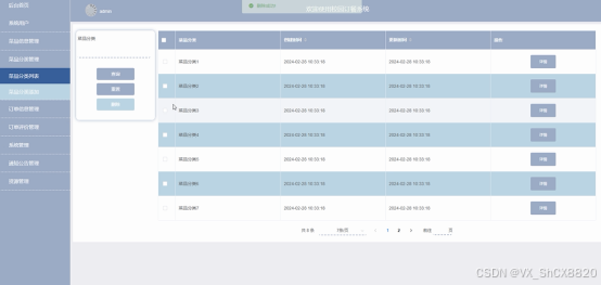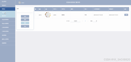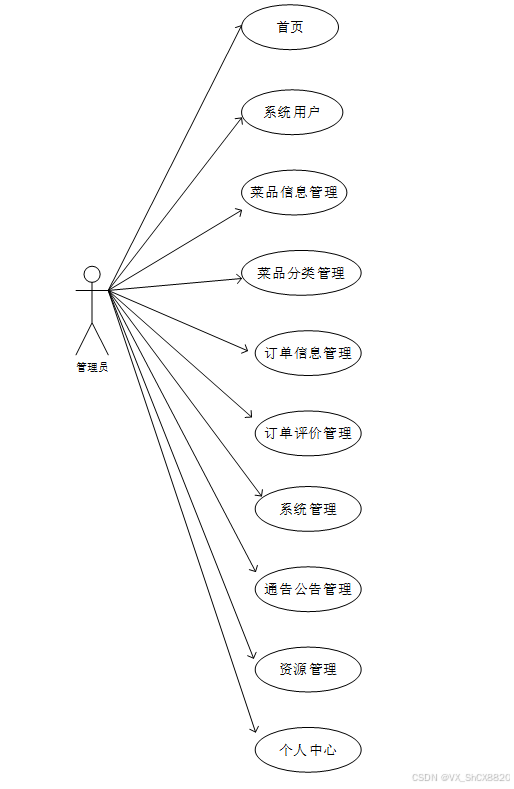 后台管理端的功能:首页、系统用户(管理员、学生用户、商家用户)、菜品信息管理、菜品分类管理、订单信息管理、订单评价管理、系统管理(轮播图管理)、通告公告管理(通知公告)、资源管理、个人中心(个人信息、修改密码)等功能。