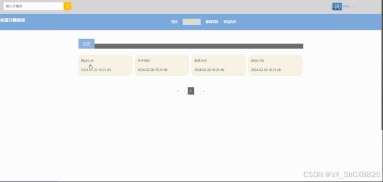 用户进行通知公告的阅览,查看管理者发布的网站公告、关于我们、联系方式、网站介绍等信息。通知公告界面图如下图所示。