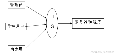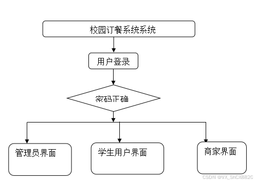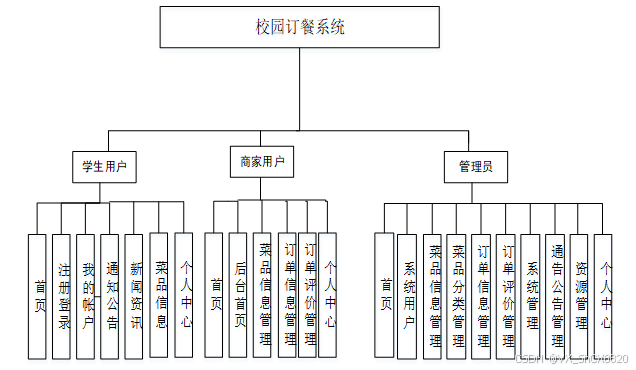 本系统可以分为:管理员、学生用户、商家用户三个功能模块。