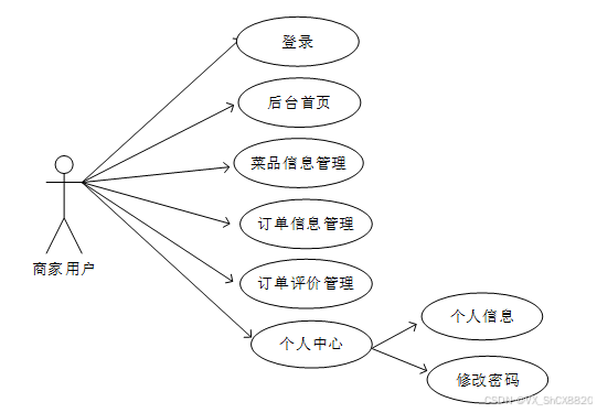商家用户的功能:登录、后台首页菜品信息管理、订单信息管理、订单评价管理、个人中心(个人信息,修改密码)等功能。
