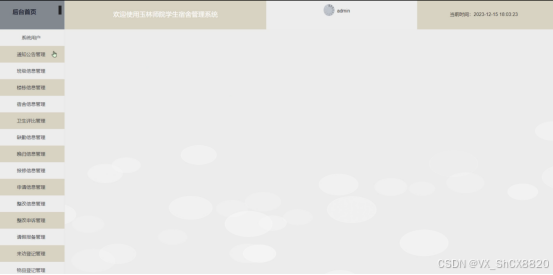 (1)玉林师院学生宿舍管理系统中的web后台管理中的后端不再使用古老的jsp+javabean+servlet技术,而是使用当前主流的ssm框架,它减少java配置代码,简化编程代码,目前ssm框架也是很多企业选择的框架之一。