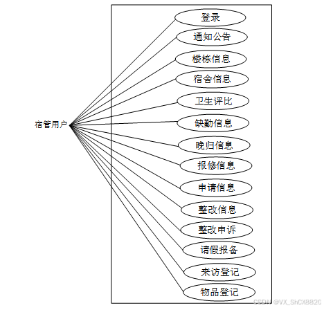 宿管用户:负责宿舍楼栋的管理和维护,可以查看宿舍信息、卫生评比等功能。