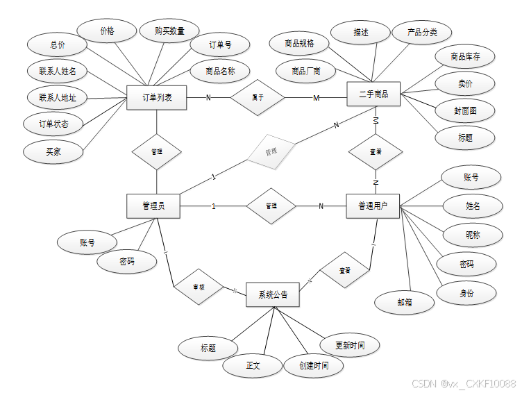 图3-3 SSM基于SSM的校园二手物品交易平台E-R图