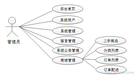 通过3.2功能的分析,本系统用户主要分为普通用户和管理员这两大角色,系统用户角色用例图分别如下图2-1,2-2所示: