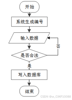 用户成功登入系统后就能够实现数据新增的操作,数据新增的编号是特定的,由系统生成,用户不能随意填写,除了编号以外,其他增加信息用户自己填写,填写后的信息经过系统验证,验证通过后即可完成新增。数据新增数流程图如下图2-3所示。