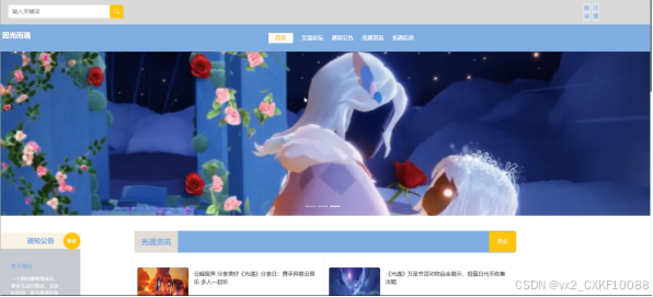 关键词:SpringBoot、JAVA编程语言;MYSQL数据库;光遇游戏网站