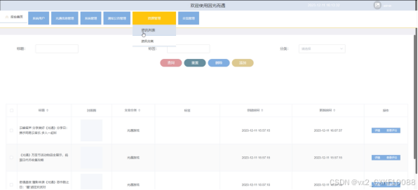 5.2.4资源管理是网站中的一个重要功能模块,主要用于管理和组织各类资讯内容。在资源管理中,用户可以浏览资讯列表,并根据自己的需求进行分类筛选。这样的分类方式有助于用户快速找到感兴趣的资讯内容,提供了更好的阅读和搜索体验,并可根据需要进行修改或删除等操作,如图5-10所示。