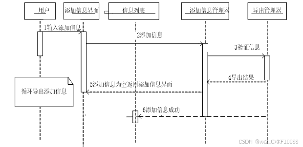 管理员以及用户登录后均可进行添加信息操作,添加信息模块顺序图如图4-4所示。