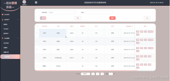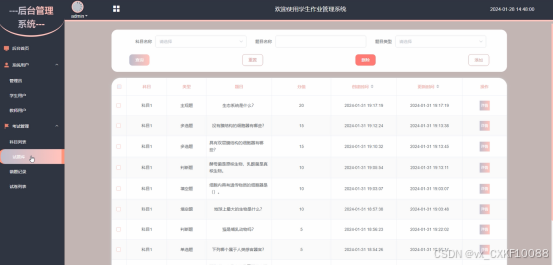 3、该系统具有完善的功能,包括管理首页、系统用户(管理员、教师用户、学生用户)考试管理(科目列表、试题库、错题记录、试卷列表)等。此外,还提供了维护和更新模块的功能。