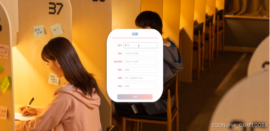 用户在注册页面填写账号、密码、确认密码、昵称、邮箱、手机号、身份进入系统,如图5-8所示。