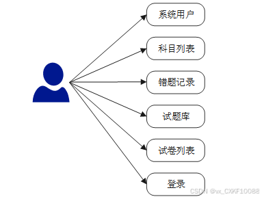 web后台管理上的管理员是维护整个学生作业管理系统中所有数据信息的,管理员可以进行登录、系统用户、考试管理(科目列表、错题记录、试题库、试卷列表)。管理员角色用例如图3-2所示。