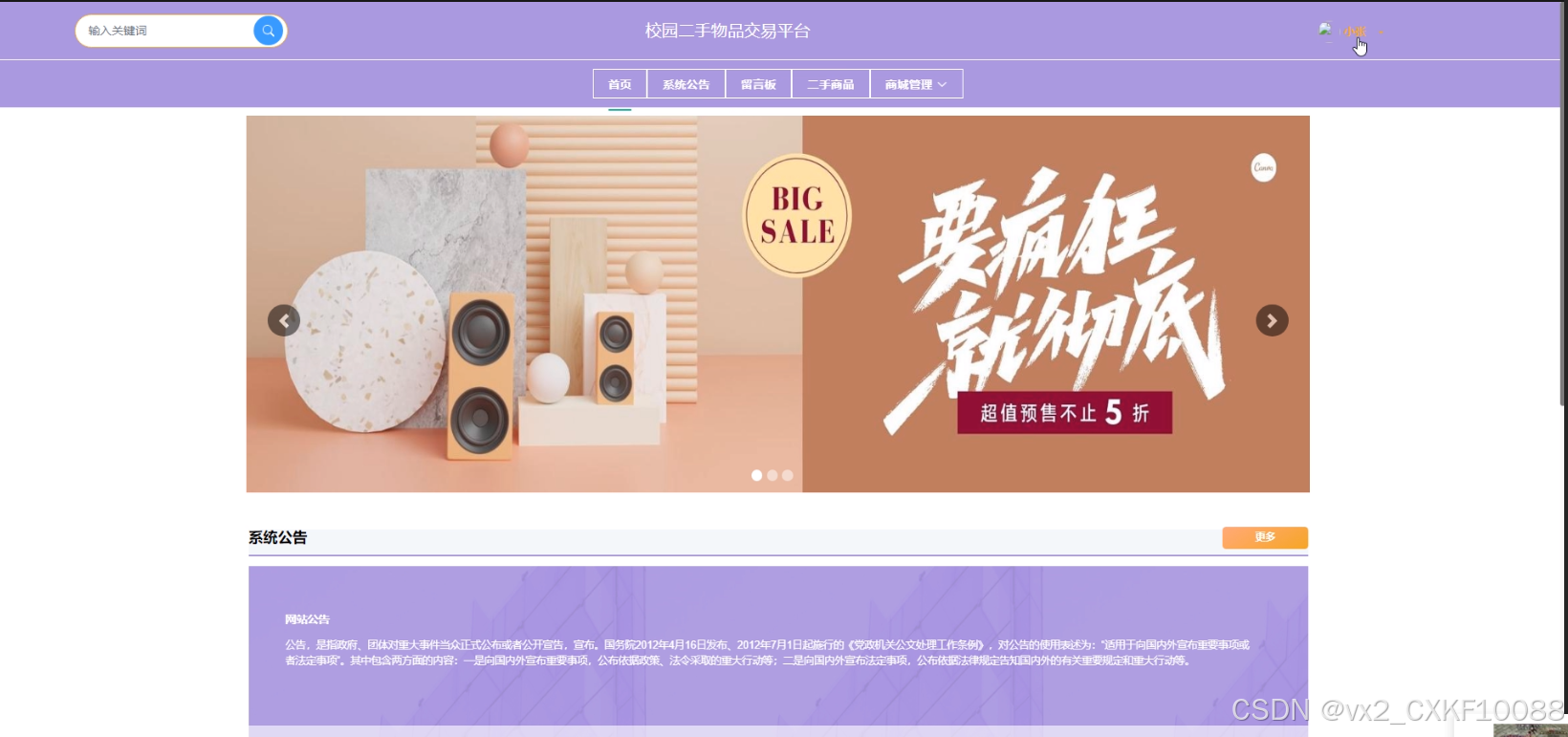 - 首页:用户可以查看系统首页展示的轮播图和系统公告等信息。