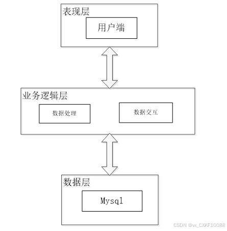 数据层(DL):由于本考试管理系统的设计与实现的数据是放在服务端的mysql数据库中,因此本属于服务层的部分可以直接整合在业务逻辑层中,所以数据层中只有数据库,其主要完成本考试管理系统的设计与实现的数据存储和管理功能。