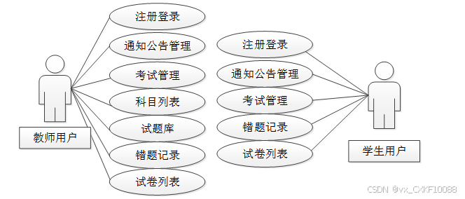 用户角色(学生用户和教师用户)用例如图2-3所示。