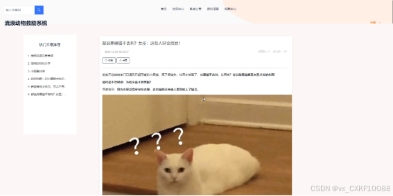 因此,开展流浪动物救助系统的研究,对于降低流浪动物数量、提高救助效率具有重要意义。通过利用数字化技术,可以更好地管理流浪动物信息,提供个性化的救助领养措施,最终解决流浪动物救助问题。