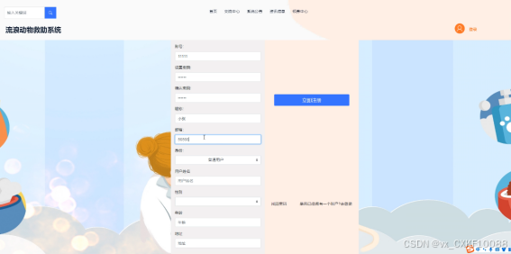 (1)用户注册登录:用户注册为正式用户并登录流浪动物救助系统。